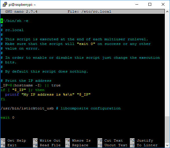 pi@raspberrypi:~ $ sudo nano /etc/rc.local
