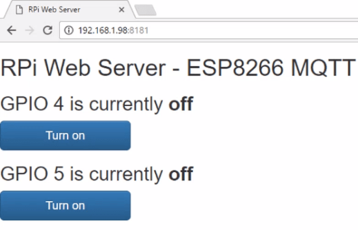 In this project youâll create a standalone web server with a Raspberry Pi that can toggle two LEDs from an ESP8266 using MQTT protocol. You can replace those LEDs with any output (like a relay that controls a lamp).
