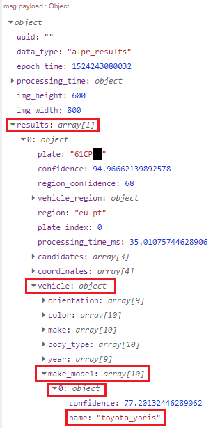Click the arrow next to the results: array[1] to expand the object. You should see a plate object with your car plate. Save the car plate in the format retrieved by the API. In my case it’s “61CP–“. You’ll need it later to identify your car: