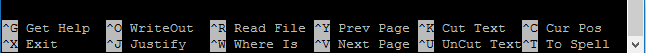Program functions are referred to as “shortcuts” in nano, such as saving, quitting, searching, etc. The most common ones are listed at the bottom of the screen (as shown in the preceding Figure), but there are many more that aren’t.