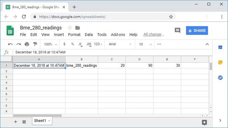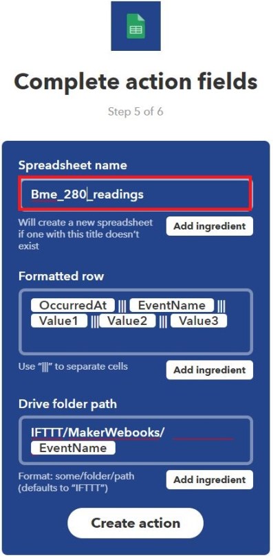- Use IFTTT Webhooks services to save sensor readings in a Google Sheets spreadsheet;