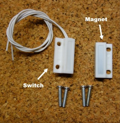 A magnetic contact switch is basically a reed switch encased in a plastic shell so that you can easily apply them in a door, a window or a drawer to detect if the door is open or closed.