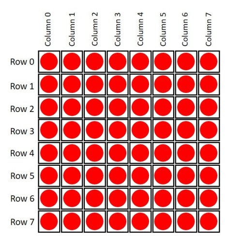 As previously stated, this matrix has 8 columns and 8 rows. Each one is indexed from 0 to 7. Here’s a figure for better understanding: