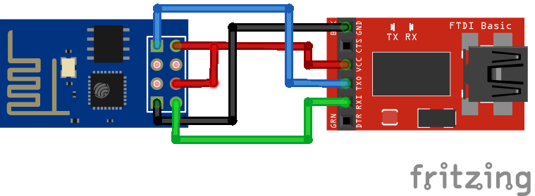 Having your ESP8266 flashed with NodeMCU, follow the next schematics to establish a serial communication between your FTDI programmer and your ESP8266 to upload some code.ESP-Bitcoin-price_bb