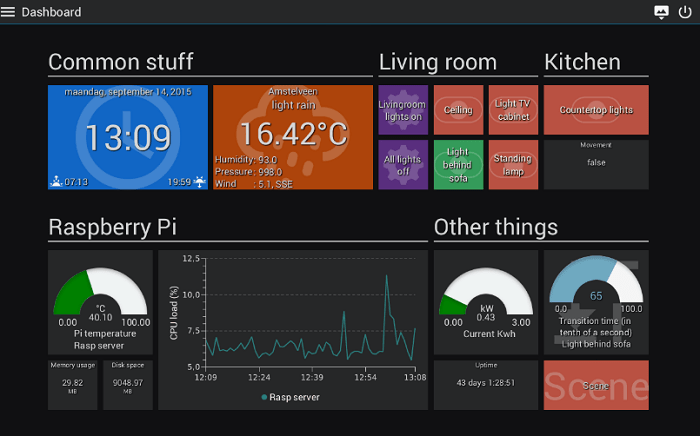 This home automation platform was exclusively developed for Raspberry Pi. It provides solutions for end users as well as for developers and hobbyists. Besides being a server, it also includes clients for multiple platforms.