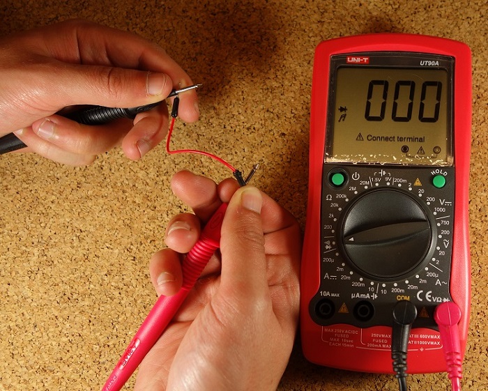 Most multimeters provide a feature that allows you to test the continuity of your circuit. This allows you to easily detect bugs such as faulty wires. It also helps you check if two points of the circuit are connected.