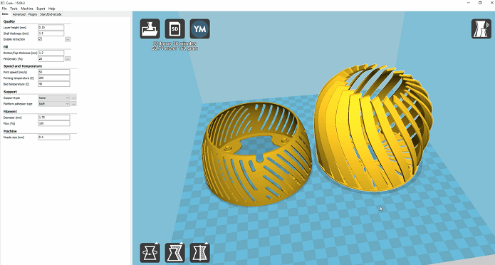 Even though I’ve added the top and bottom parts to Cura to show you, I’ve print them individually.