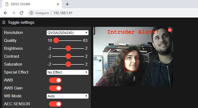 Now, you can access your camera streaming server on your local network. Open a browser and type the ESP32-CAM IP address. Press the Start Streaming button to start video streaming.