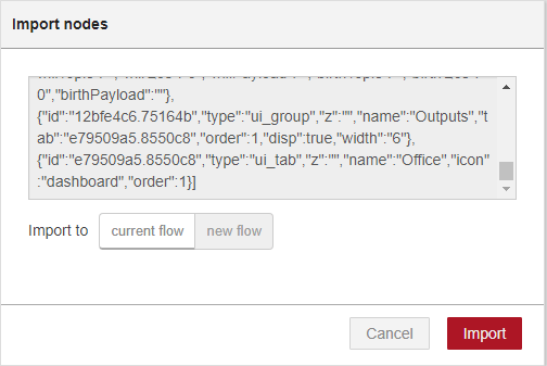 To import the Node-RED flow, go the Github repository or click the figure below to see the raw file, and copy the code provided.