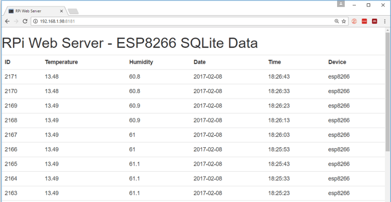 ESP8266 Publishing DHT22 Readings to SQLite Database