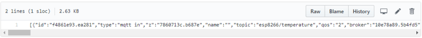 Here’s the imported flow that controls the ESP8266 and displays the published sensor readings.