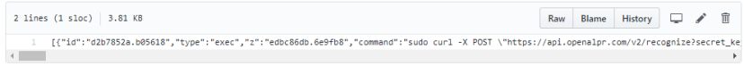 sudo curl -X POST "https://api.openalpr.com/v2/recognize?secret_key=sk_8081041caedd50a---------&recognize_vehicle=1&country=eu&return_image=0&topn=10" -F image=@/home/pi/Pictures/car-photo.jpeg