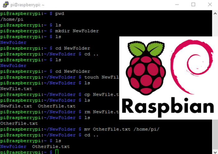 pi@raspberry:~ $ cd NewFolder pi@raspberry:~/NewFolder $