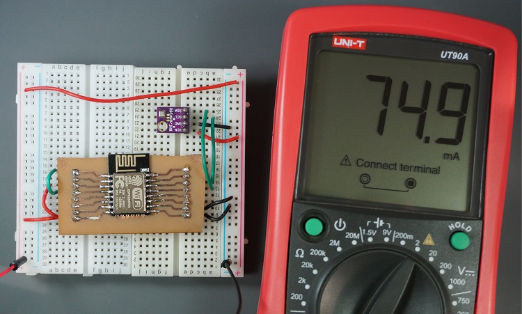 Note: if you’re using an ESP8266 12-E, we recommend using an adapter to use it with a breadboard and make the wiring easier. Alternatively, you can make a PCB at home like we did. We used the etching technique.