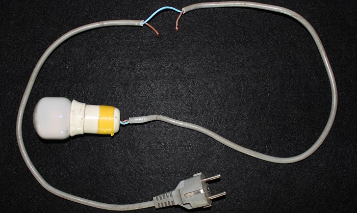 Besides these electronics components, you also need an AC male socket, an AC wire and a lamp bulb holder (a lamp cord set). My lamp cord set is the one in the figure below.