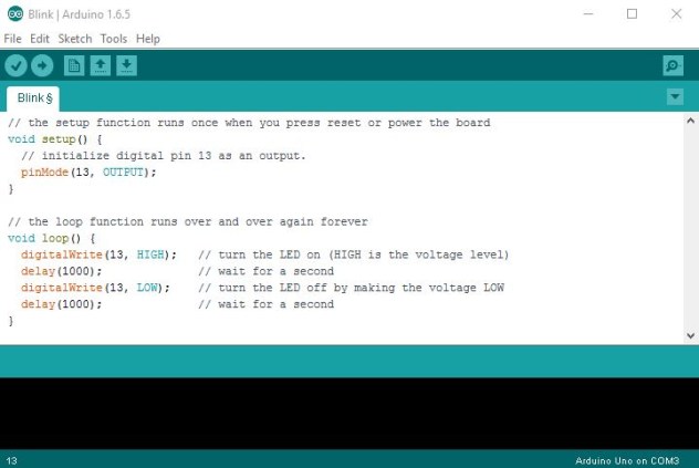 This is called the “Hello World” program of Arduino and shows that with just a few lines of code you can create something that has a real world application.