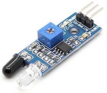 This module is very easy to use and is often used in robots to detect objects near the sensor. These sensors have a digital output pin that outputs a signal when it detects an object. When the module detects an obstacle, the green indicator light on the board lights up. The module detects the distance 2 ~ 30cm, detection angle 35 °. View this module on eBay ->