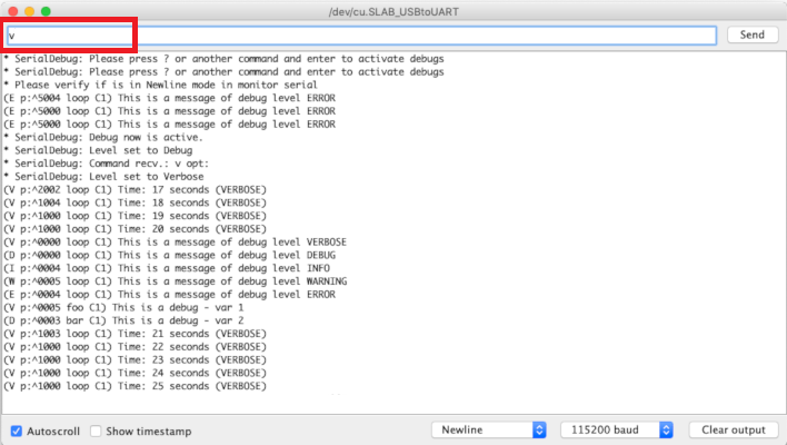 With the SerialDebug library, you can have a simple and functional software debugger. In the Serial Monitor and using SerialDebug library, you can: