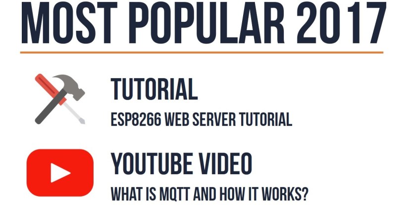 Throughout 2017, our most popular tutorial was undoubtedly ESP8266 Web Server Tutorial. It’s great to see how people are getting more and more interested in building their own Internet of Things gadgets. If you haven’t read the most popular post in 2017, you can read it here:Â ESP8266 Web Server Tutorial