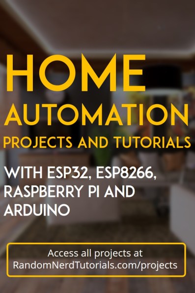 We create home automation projects using open-source hardware and software. We use ESP32, ESP8266, Arduino and Raspberry Pi. If you want to learn how to build a complete Home Automation System using Arduino, ESP8266 and the Raspberry Pi, consider taking a look at our course: Build a Home Automation System for $100.