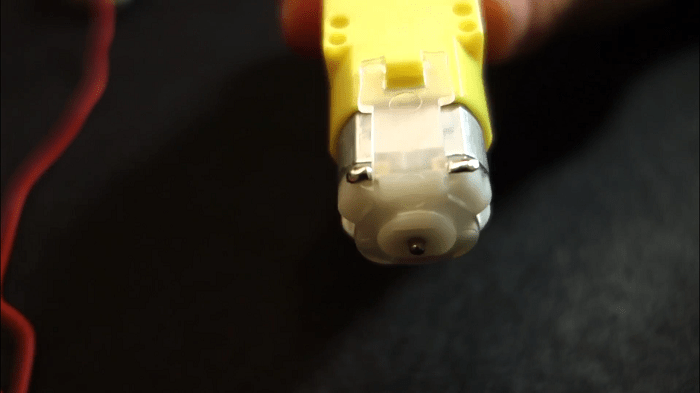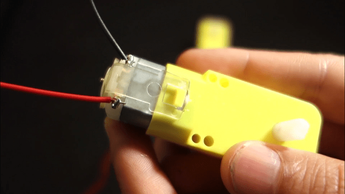 5) Then, grab the wire and solder it to the DC motor pin. Repeat that process to all the other wires.